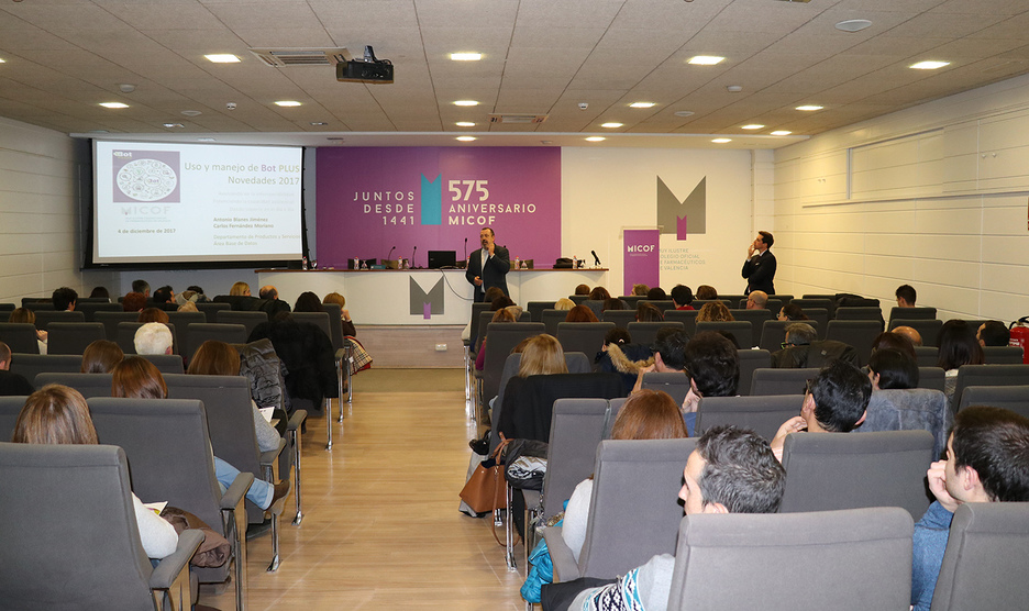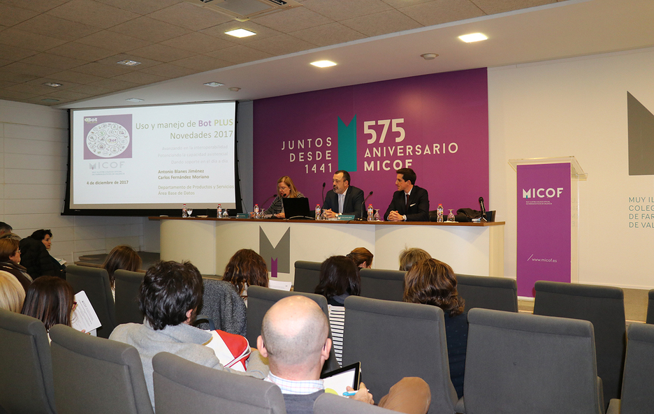 El Muy Ilustre Colegio Oficial de Farmacéuticos de Valencia, acogió ayer por la tarde el taller formativo Bot PLUS que fue impartido por el responsable del departamento de Productos y Servicios y Coordinador de Área de Base de Datos del Consejo General, Antonio Blanes.
