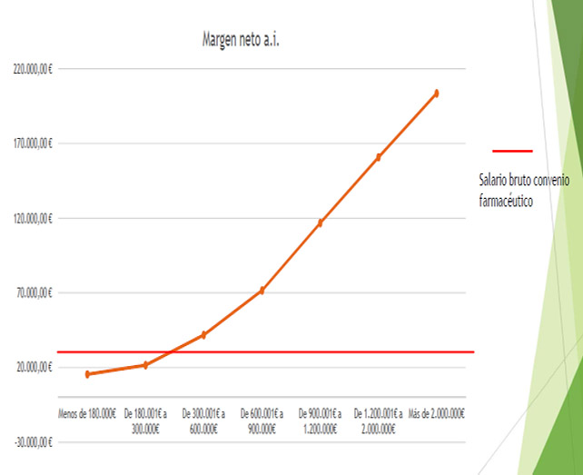 Presenta especial interés establecer la rentabilidad de las farmacias desde el punto de vista fiscal, algo que ha sido analizado por Aspime en la última edición de Infarma en Madrid, comparando la rentabilidad fiscal antes de impuestos con el salario bruto de los farmacéuticos establecido por convenio que son 25.561,50 € anuales.