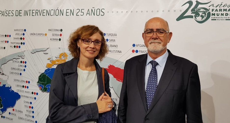 El presidente del MICOF, Jaime Giner, junto a la vocal de Asociaciones del Colegio, Maite Torres, asistieron ayer por la tarde al acto de celebración del 25 aniversario de Farmamundi. Esta organización no gubernamental ha dedicado este cuarto de siglo al desarrollo y a la acción humanitaria y de emergencia, desde la provincia de Valencia.