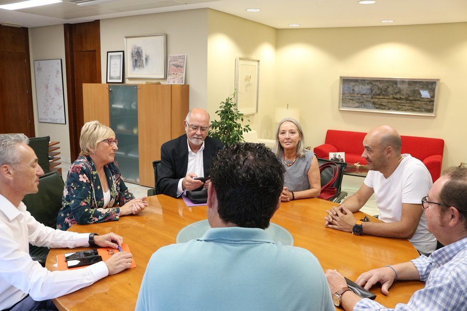 El decreto de concertación de servicios profesionales que cuestiona Enfermería nació de la colaboración entre los COF valencianos y la Administración. Así, fue objeto de debate en una reunión mantenida en julio de 2018, cuando estaba pendiente de aprobación por el gabinete jurídico consultivo de la Generalitat Valenciana, así como otras cuestiones, como el proyecto de atención farmacéutica domiciliaria Domi-Eqifar. En la imagen, José Manuel Ventura, director de Farmacia, y la consejera de Sanidad Ana Barceló, con Jaime Giner, presidente del COF de Valencia; Fe Ballestero, del COF de Alicante, y Sergio Marco, del COF de Castellón.