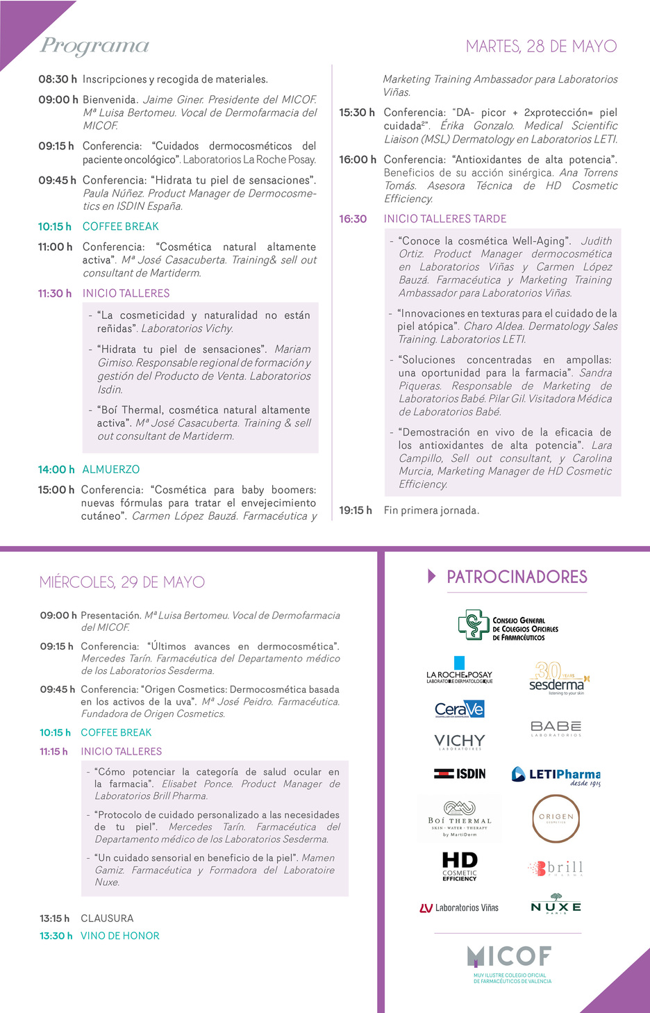 Tras el éxito de las anteriores jornadas, el MICOF ha organizado la IV Jornada de Networking de Dermofarmacia, bajo el lema “Dermofarmacia: innovación al cuidado de tus pacientes”. En esta ocasión, y debido al gran número de laboratorios que han querido sumarse, el programa de la Jornada se ha ampliado a una mañana más por lo que se realizará en nuestra sede de Paterna (C/Alexander Graham Bell, 4. Parque Tecnológico Paterna. Valencia) los días 28 y 29 de mayo a las 9:00 h.
