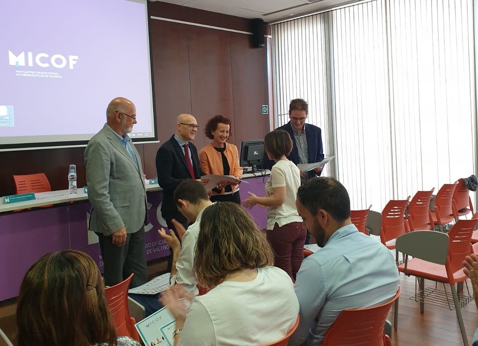 Este mediodía el MICOF y la Universitat de València han celebrado en la sede colegial de Paterna el acto de entrega de diplomas a los 53 alumnos del Curso Diploma de Especialización de farmacéuticos especialistas en Ortopedia, que ha contado con la participación del decano de la Facultad de Farmacia, Juan Carlos Moltó, el presidente del MICOF, Jaime Giner, la vocal de Ortopedia del MICOF, Concha Pérez, y el coordinador del Departamento de Ortopedia del MICOF, Julián Navas.