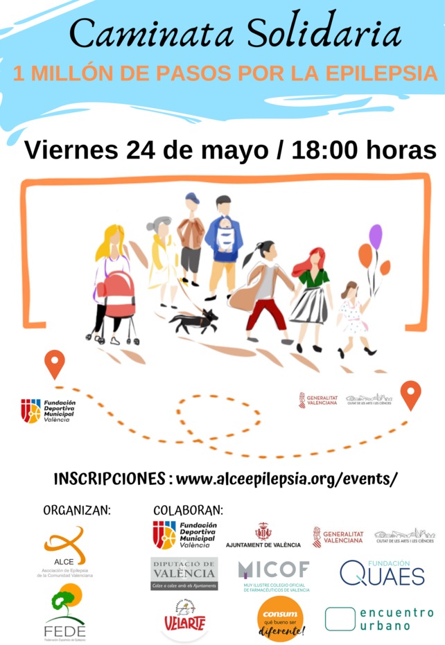 En la Campaña de este año, FEDE, la Federación Española de Epilepsia y diversas entidades miembro entre las que está ALCE, Asociación de Epilepsia de la Comunidad Valenciana presentan como acto central el 24 de Mayo, Día Nacional de la Epilepsia: la I Caminata Solidaria ‘Un Millón de Pasos por la Epilepsia’.