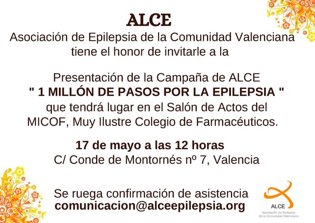 La Asociación de Epilepsia de la Comunidad Valenciana, ALCE, presentará el próximo viernes 17 de mayo a las 12:00 h en el Salón de Actos del MICOF la III Campaña de sensibilización e información sobre epliepsia.