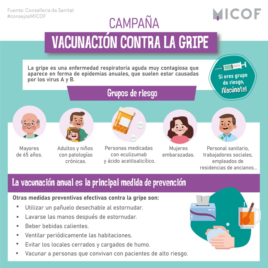 Con el fin de darle difusión a la campaña de la vacunación antigripal, se ha realizado la sguiente infografía para resaltar los grupos de riesgo y recomendaciones preventivas y que podéis difundir entre vuestros pacientes.