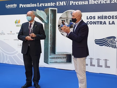 El presidente del MICOF ha sido el encargado de recoger la estatuilla que rinde homenaje al colectivo sanitario.