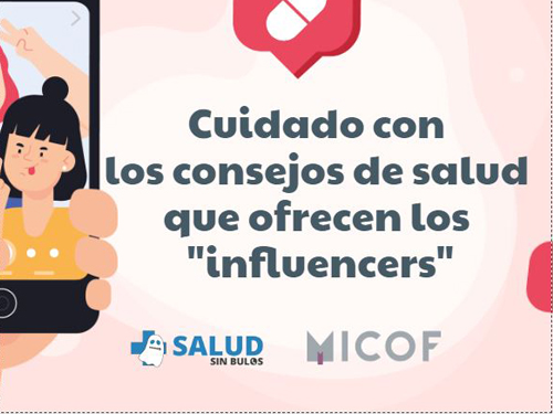 EL MICOF está en contra de los 'influencers' que ofrecen consejos de salud sin respaldo científico y con una absoluta irresponsabilidad. Formamos parte del listado de webs fiables de farmacia de #Saludsinbulos, por eso desconfía de la información si no lo ves claro. Para consultas sabes que tienes a #tufarmaceuticoatulado. Protege tu salud y la de los demás. #MedicamentosSinBulos