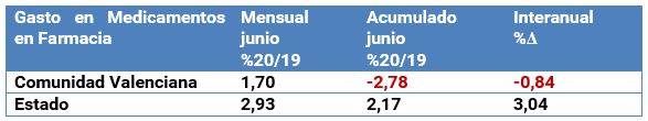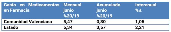 LAS FARMACIAS DE LA COMUNIDAD VALENCIANA SALEN DE LA EVOLUCIÓN NEGATIVA EN GASTO EN EL MES DE JUNIO, PERO SIGUEN EN NEGATIVO EN NÚMERO DE RECETAS.