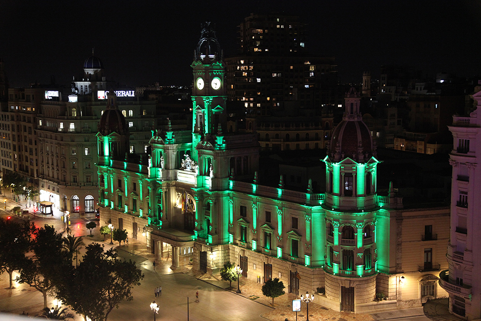 Por otro lado, Valencia se ha sumado al resto de ciudades españolas que iluminarán sus edificios emblemáticos para reconocer la labor de los profesionales farmacéuticos durante toda la pandemia. En este sentido, anoche la fachada del Ayuntamiento se tiñó de color verde, el color representativo de las cruces de las oficinas de farmacia que han permanecido de guardia para atender a todos los ciudadanos.