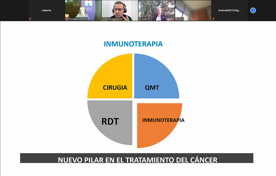 Tras la intervención de Mª Luisa Bertomeu, se ha dado por iniciado el ciclo de jornadas ONCOMICOF con la primera sesión, ‘Actualización de Terapias Oncológicas’, llevada a cabo por David Garduño Blanco, responsable del Departamento de Oncología de La Roche-Posay. Al finalizar la charla, Garduño ha respondido a las dudas que los farmacéuticos le han planteado a través del chat.