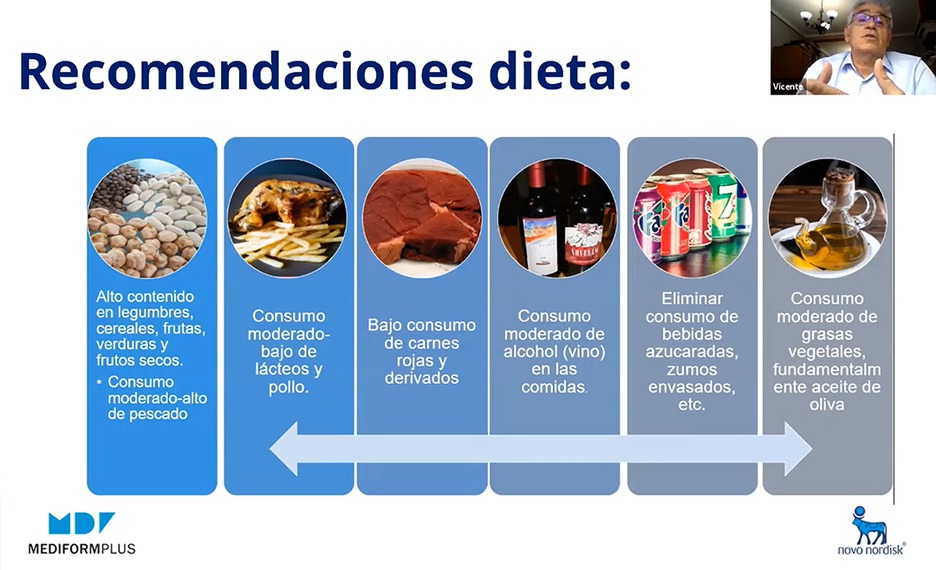La presentación del acto online corrió a cargo de Salva Gutiérrez, farmacéutico del CIM y Atención Farmacéutica del MICOF, quien tras su intervención dio paso a la primera de las ponentes: la Dra. Mercedes Tolosa, endocrino en el Hospital General de Valencia. Tolosa ofreció datos de especial relevancia referentes a la epidemiología y la evolución que se prevé de la enfermedad de la diabetes, además de informar sobre los nuevos tratamientos farmacológicos para la DM tipo II con especial énfasis en la semaglutida; fármaco que presentaban por parte del laboratorio del que se mostró su eficacia en la práctica clínica y la seguridad que ha demostrado su uso. También destacó la importancia de los tratamientos no farmacológicos, sobre todo los hábitos de vida saludables.