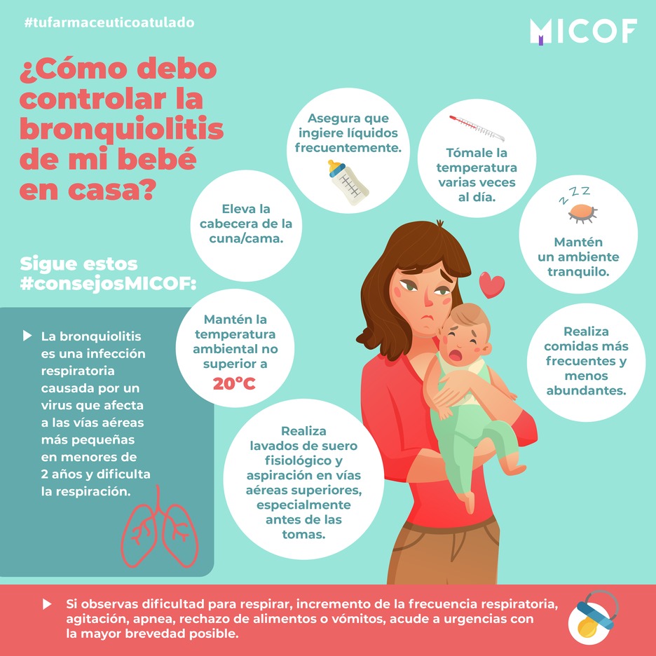 Debido a que actualmente no existe un tratamiento para curar la bronquiolitis, este se basa en aliviar los síntomas que los pequeños pueden presentar. En caso de requerirlo, y siempre bajo prescripción, el pediatra administrará oxígeno cuando note dificultad para respirar, antitérmicos (paracetamol o ibuprofeno, según la edad) por la fiebre y sueros o una sonda nasogástrica para darle de comer en caso de no tener apetito.