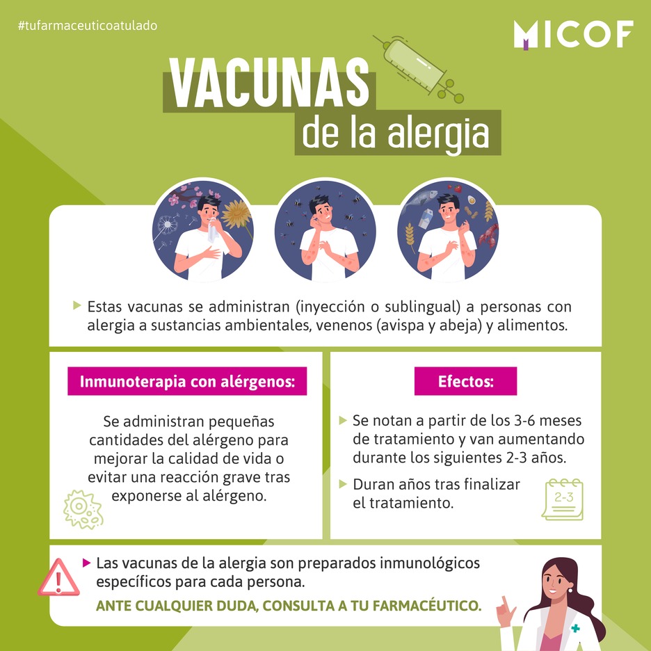 Para solventar este problema, la principal recomendación suele ser tomar medidas para evitar el alérgeno como dejar de consumir un alimento; situación que en la mayoría de los casos puede resultar considerablemente simple de acatar. Sin embargo, en otros alérgenos como el polen, los ácaros del polvo o la caspa de los animales puede resultar muy difícil -por no decir imposible- evitarlos. Si bien es cierto que existen tratamientos para ciertas enfermedades (asma, rinoconjuntivitis, etc.) como son los antihistamínicos, que pueden alivian y controlar en cierto grado la enfermedad. Mientras que la otra opción son las vacunas de la alergia, que es una “inmunoterapia con alérgeno”, es decir, que se administra el alérgeno (sustancia que provoca una reacción alérgica en el cuerpo sin ser nociva) en pequeñas cantidades para evitar una reacción grave tras exponerse al alérgeno o para mejorar la calidad de vida. De este modo, la vacuna modifica la respuesta inmunológica de la persona a la que se le administra.