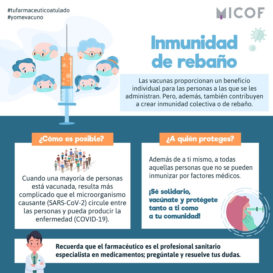 La vacunación, especialmente si se da en grupos poblacionales grandes, puede suponer una ventaja para aquellas personas que no pueden recibir la vacuna. Esto se debe a que todas aquellas personas que tengan administrada la vacuna no van a correr riesgo si se exponen al agente externo y, por tanto, la circulación de este patógeno es más difícil cuantas más personas estén inmunizadas. Es decir, que cuando te vacunas te estás beneficiando tanto tú como el resto de la comunidad y eso es lo que se conoce como inmunidad colectiva o de rebaño. Aunque las vacunas no proporcionan una protección 100% frente al microbio, sí que ofrecen una inmunidad sustancial a la comunidad.