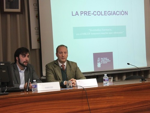 Nuestros vocales Vicente Brull y Joaquín Peiró hablaron a los estudiantes de la Bolsa de Trabajo y la Precolegiación en el MICOF.