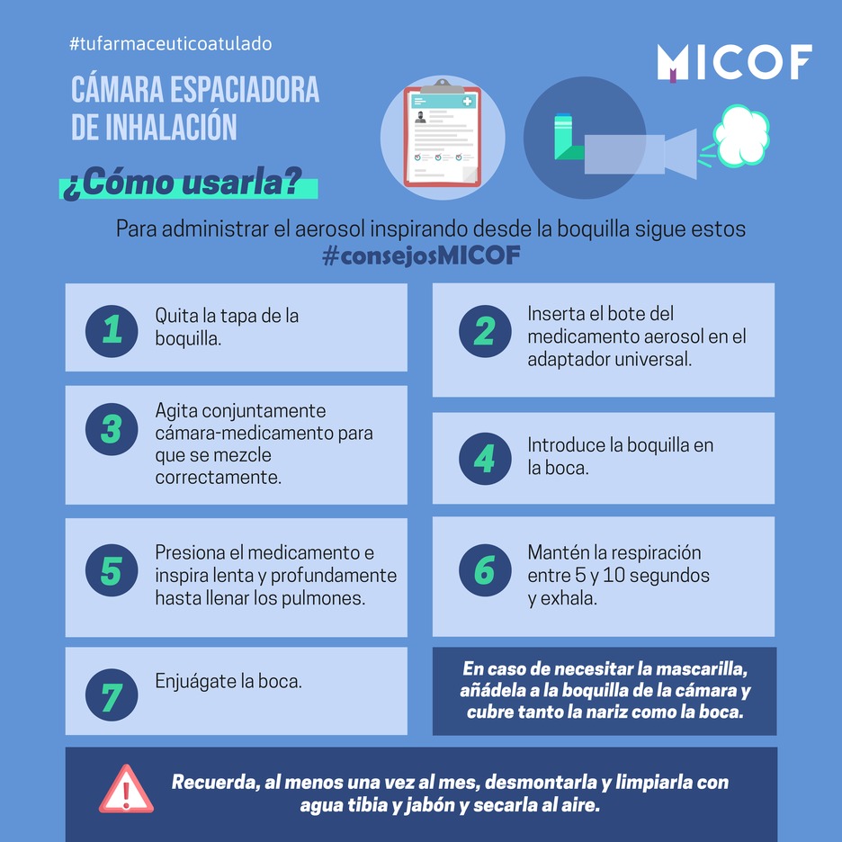 Para administrar el fármaco inspirando desde la boquilla proporcionaremos los siguientes #consejosMICOF: