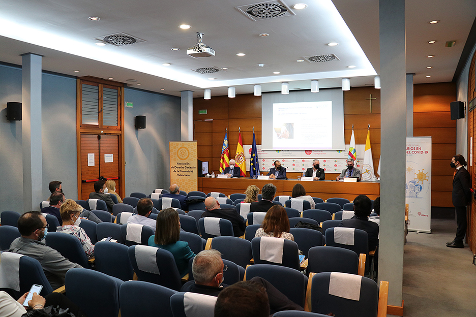 El Muy Ilustre Colegio Oficial de Farmacéuticos de Valencia ha participado en la jornada "Observatorio profesional: Los sanitarios en la crisis del Covid-19" organizada por la Asociación de Derecho Sanitario de la Comunitat Valenciana, celebrada esta mañana en el Palacio de la Colomina.