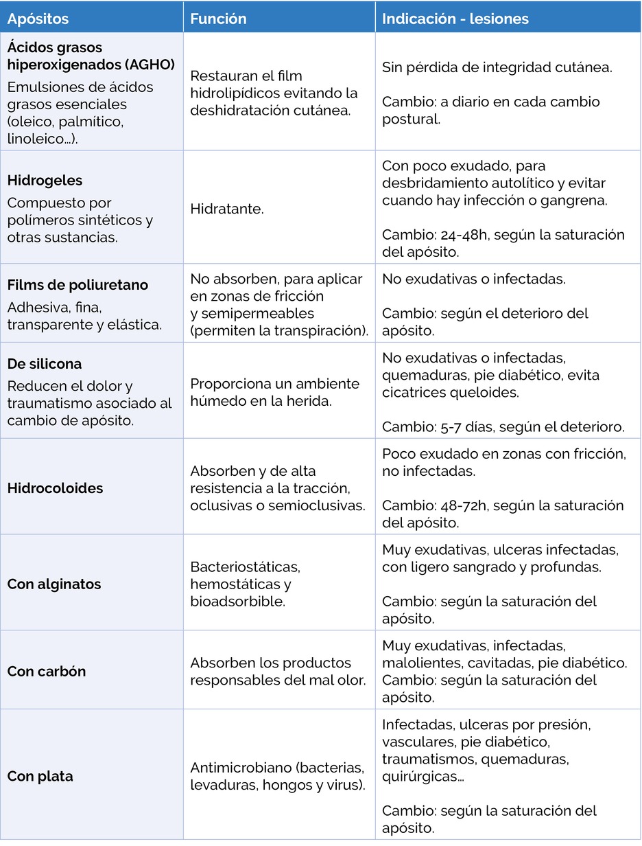 La elección del apósito se basa en las características de la lesión, es decir, según la cantidad de exudado, el dolor, los microorganismos presentes, la región del cuerpo y el estado de la piel.