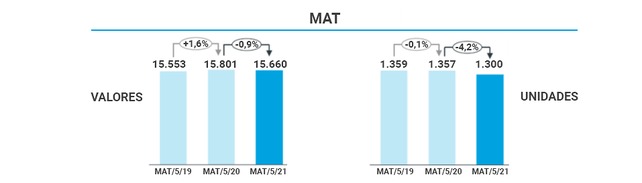 Desde el año 2019 a 2020 se produjo un incremento del mercado de medicamentos del 1,6% en valores, en cambio desde 2020 a 2021 se ha producido un descenso del (-0,9%). En el caso de la evolución del mercado en unidades la caída se produce los dos años, de tal manera que desciende de 2019 a 2020 un (-0,1%) y de 2020 a 2021 un (-0,4%)