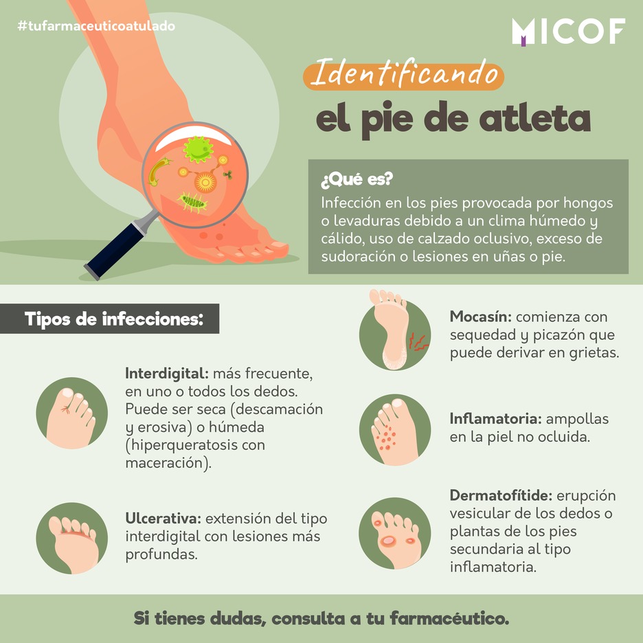 El pie de atleta es una infección dermatológica en los pies que generalmente afecta a los dedos o espacio entre estos, provocada por hongos o levaduras. Además, entre los diferentes hongos que pueden provocarlo, los que son especialmente infecciosos son: Trichophyton rubrum, T. interdigitale, T. mentagrophytes y Epidermophyton floccosum. Se calcula que aproximadamente el 70% de la población mundial en algún momento de su vida ha experimentado algún episodio de esta infección, independientemente de la edad o género de la persona. De hecho, se considera que esta se está expandiendo a nivel mundial.