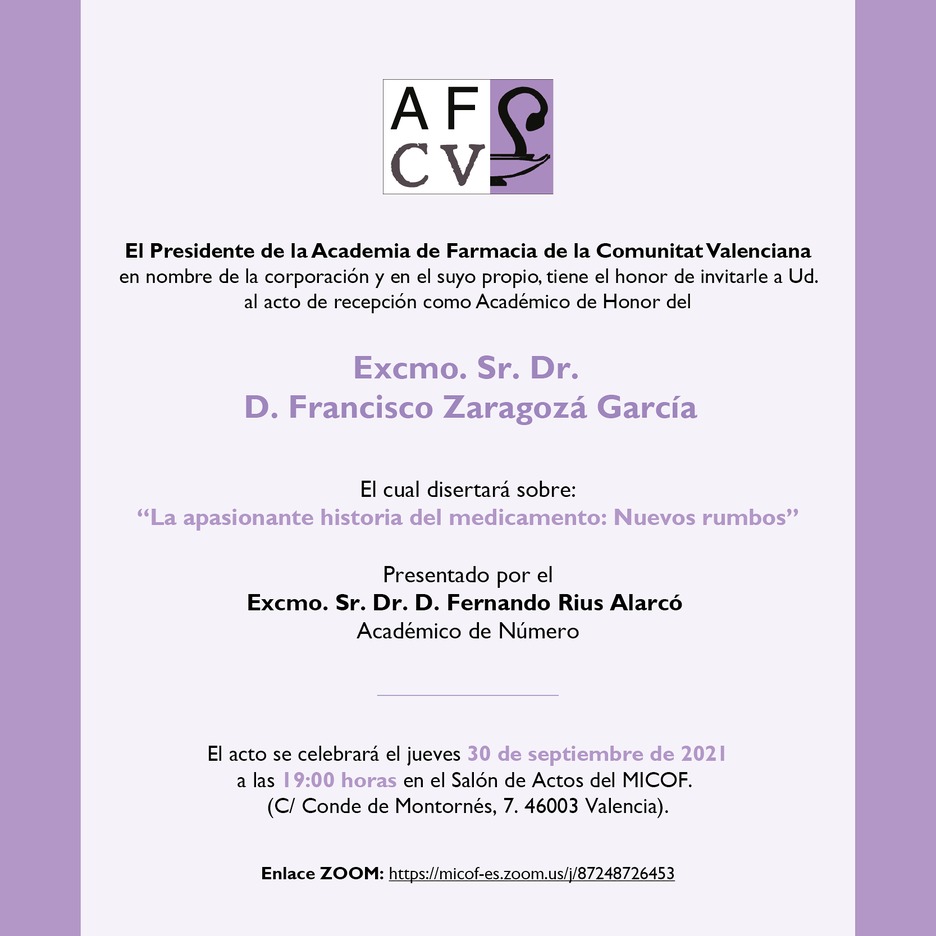 LUGAR Salón de actos del MICOF de Valencia - Online via ZOOM