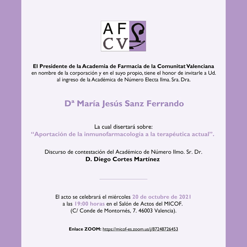 Ingreso como Académica de Número Electa Ilma Sra. Dra. María Jesús Sanz Ferrando