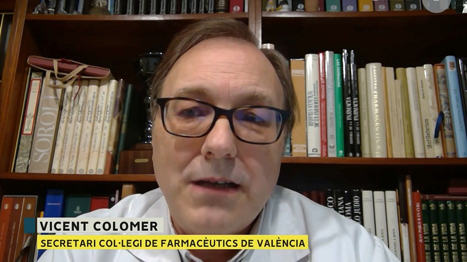 El secretario del MICOF, Vicente Colomer, interviene en 'Informatiu Nit' de À Punt para una noticia sobre los avances para que desde las farmacias valencianas se puedan notificar casos positivos de covid por test de antígenos a la Conselleria de Sanitat.