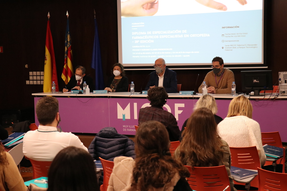 La sede de Paterna del MICOF ha acogido esta mañana la inauguración de la 28ª edición del Diploma de Especialización de Farmacéuticos Especialistas en Ortopedia. La formación de postgrado se desarrollará hasta el mes de mayo y está dirigida a licenciados y graduados en Farmacia.