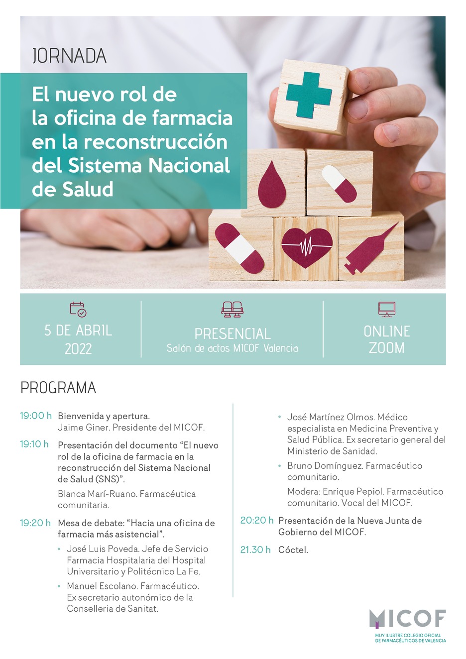 En estas Jornadas semipresenciales se presentará del documento “El nuevo rol de la oficina de farmacia en la reconstrucción del Sistema Nacional de Salud (SNS)” y la nueva Junta de Gobierno del MICOF.