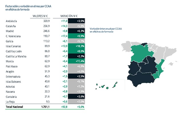 A partir de los datos suministrados por la consultora HMR se observa una evolución positiva en todas las Comunidades Autónomas en la venta total de medicamentos y productos de Consumer Health en las farmacias.