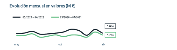 El mercado total está aumentando en abril en relación al mismo mes del año anterior, aunque hay que tener en cuenta que en abril de 2021 todavía estábamos en una de las fases agudas de la pandemia y, sin embargo, tuvo un día laborable más que el actual.