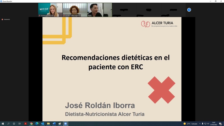 Esta tarde el Colegio ha celebrado el webinar ‘Recomendaciones dietéticas en el paciente con enfermedad renal crónica’, en colaboración con ALCER Turia (Asociación para la lucha contra las enfermedades del riñón). Los farmacéuticos y pacientes conectados han podido profundizar en el ámbito de la enfermedad renal crónica, haciendo especial hincapié en las recomendaciones dietéticas para este tipo de pacientes.