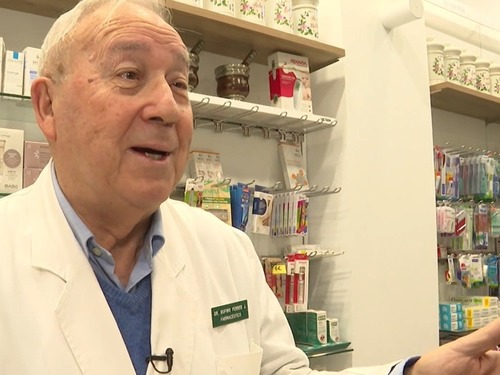 El farmacéutico Rufino Ferrer, miembro de la Comisión de Museo, atiende al Canal 24 Horas de TVE