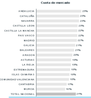 Por Comunidades Autónomas Andalucía es la que tiene un mayor consumo en valores (un 25%), mientras que Cataluña es la de mayor consumo en unidades (un 45%).