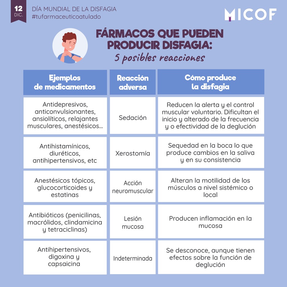 Se deben tener en cuenta que algunos medicamentos pueden producir efectos adversos que finalmente deriven en disfagia. ¿Cuáles son los efectos adversos que comentamos? Son: la sedación, la xerostomía, la acción neuromuscular, la lesión mucosa y otros indeterminados.