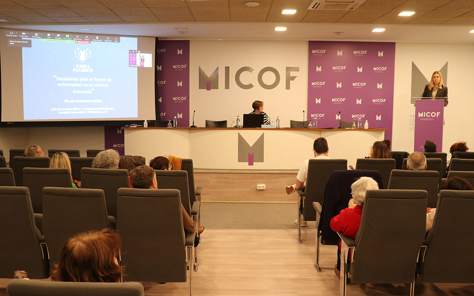 Esta tarde, la sede de Valencia del MICOF ha acogido la conferencia “Decisiones del paciente para el futuro en enfermedad renal crónica avanzada”, impartida por la Dra. Pilar Sánchez Pérez, jefa de la Sección de la Unidad de Enfermedad Renal Crónica, Hemodiálisis y Diálisis peritoneal del Hospital La Fe de Valencia. La sesión se ha englobado dentro del programa de actividades de Xarxa Pacients y en colaboración con la asociación ALCER Turia.
