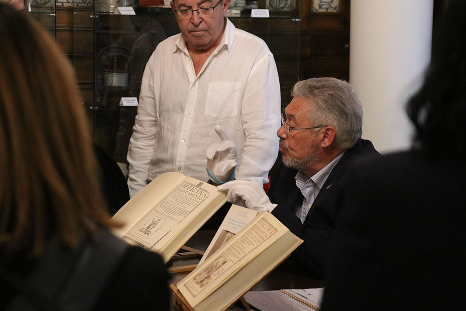 Una vez finalizadas las presentaciones, el vocal del MICOF Ricardo Folgado ha tomado el testigo para dar pie a la visita guiada. En ella les ha contado a los decanos los entresijos de la historia este Colegio con 582 años de historia y las curiosidades que envuelven a este edificio construido en 1886.