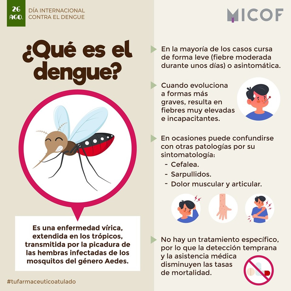 No existe un tratamiento específico contra el dengue, aunque se centra en aliviar el dolor utilizando analgésicos.