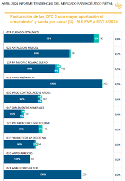 Según el informe farmacéutico “retail”, es decir el de las farmacias, elaborado por la consultora IQVIA, el mercado de productos OTC ha experimentado un crecimiento del 5,8% respecto al mismo mes del año 2023.