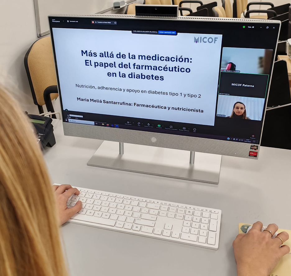 María Meliá, farmacéutica y nutricionista, especializada en diabetes ha sido la encargada de impartir el webinar en el que se ha puesto el foco en el rol del farmacéutico en la diabetes tipo 1, apoyo del farmacéutico en la diabetes tipo 2, la colaboración interdisciplinaria, el futuro del manejo de esta patología, además de la empatía y la comunicación entre pacientes.